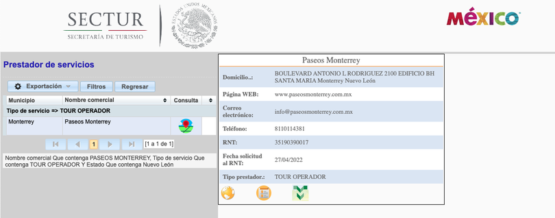 En Paseos Monterrey, entendemos la importancia de garantizar la seguridad y calidad de tu experiencia turística. Por eso, nos enorgullece ser una empresa certificada en la industria del turismo. Nuestros servicios cumplen con los estándares y regulaciones establecidos por las autoridades competentes, brindándote tranquilidad y confianza durante tus paseos.